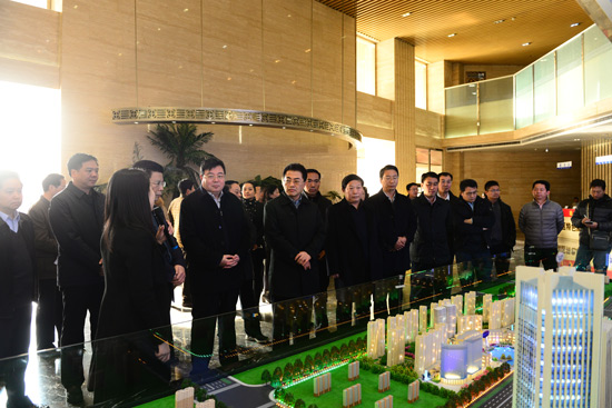 在嘉億互聯(lián)網(wǎng)大廈項(xiàng)目一樓大廳,省委常委、常務(wù)副省長(zhǎng)翁杰明一行聽取了新鄉(xiāng)市特色商務(wù)區(qū)、區(qū)域經(jīng)濟(jì)發(fā)展優(yōu)勢(shì)以及嘉億互聯(lián)網(wǎng)大廈的運(yùn)營(yíng)發(fā)展等相關(guān)情況匯報(bào)。