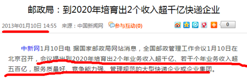 此前行業(yè)內(nèi)主要用全網(wǎng)收入做比較,包括所有有關(guān)公開報(bào)道。2012年國家為整個(gè)行業(yè)制定了整體發(fā)展規(guī)劃,提出2020年前打造2個(gè)年收入超千億的快遞航母。這里指的都是全網(wǎng)收入。