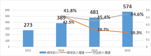 順豐與行業(yè)整體收入增速對(duì)比