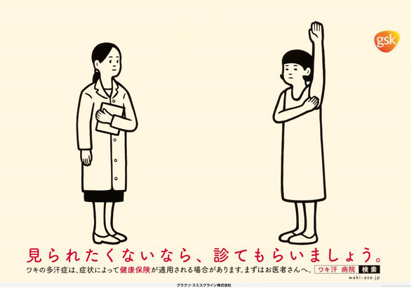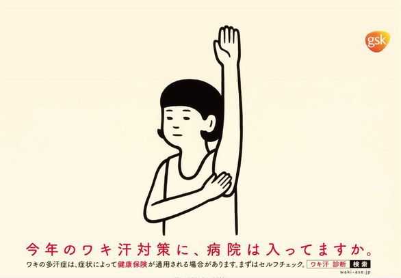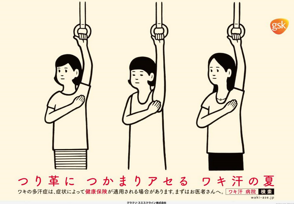 交通集團(tuán)JR東日本主辦的“交通廣告大獎(jiǎng)2016”當(dāng)中,得最大獎(jiǎng)的是制藥與生物技術(shù)公司葛蘭素史克的一則廣告,它在廣告中督促人們,如果出現(xiàn)“胳肢窩的多汗癥,要去看醫(yī)生”。