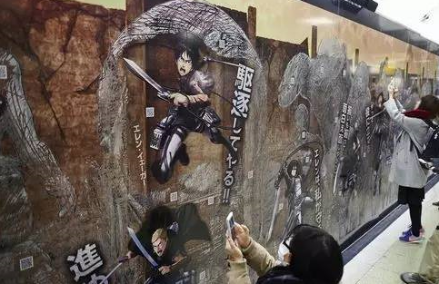 2016年2月,作為PS4游戲《進(jìn)擊的巨人》宣發(fā)計(jì)劃的一部分,東京新宿站設(shè)置了一塊12米長(zhǎng)、2.4米高的背景板,再現(xiàn)了巨人沖破城墻的一幕。但是,這50個(gè)巨人都可以用硬幣刮掉,刮掉后的背景板如果顯示出調(diào)查兵團(tuán)們的圖案,人們可以?huà)叽a免費(fèi)獲取一張手機(jī)壁紙――這在重視版權(quán)保護(hù)的日本,也算是一個(gè)實(shí)在的粉絲福利。僅僅用了56分鐘,前后共有約1600人參加了這個(gè)企劃,“巨人們”被分刮一空。
