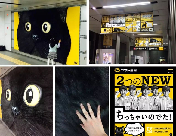 在車(chē)站強(qiáng)化品牌表現(xiàn)力與知名度,也是如今日本廣告主們喜歡采用的方式之一。其中代表作當(dāng)屬被人們稱(chēng)為“黑貓宅急便”的物流公司――大和運(yùn)輸(ヤマト運(yùn)輸)于2015年在澀谷站設(shè)置的一只巨大黑貓。