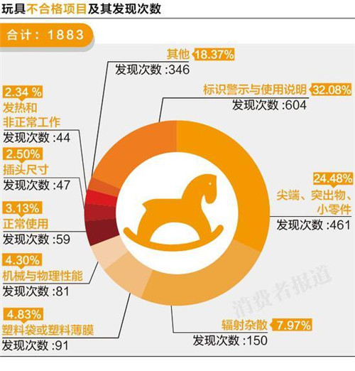 兒童產(chǎn)品的整體不合格發(fā)現(xiàn)率高達(dá)16.6%,美高樂(lè)、多喜愛(ài)、松堡王國(guó)、回力、步步高、青蛙王子、天堂傘等知名品牌均數(shù)次登上黑榜,兒童產(chǎn)品在標(biāo)識(shí)、危險(xiǎn)尖端與零件上存在更多的問(wèn)題。