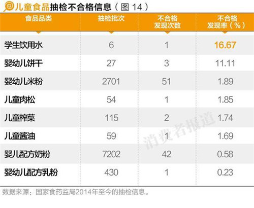 《消費(fèi)者報(bào)道》通過(guò)梳理國(guó)家食藥監(jiān)局2014年以來(lái)的12551條兒童食品抽檢數(shù)據(jù)發(fā)現(xiàn),兒童食品的合格率較高,達(dá)99%,而不合格品牌也是較為小眾品牌。本刊提醒消費(fèi)者謹(jǐn)慎購(gòu)買奶粉不合格次數(shù)較多的幾個(gè)品牌,如雅因樂(lè)、冠爾優(yōu)等。