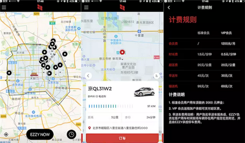 EZZY 在注冊時收取押金 2000 元,用車時的費(fèi)用是按使用時間收取,遇到事故車輛和駕駛者都有保險,等等。