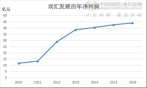 但是,相比來說,雙匯2016年凈利潤的增長卻不似預期。雙匯發(fā)展年報中這樣解釋:2016年,雙匯面臨全球政治形勢復雜多變、經(jīng)濟持續(xù)低迷,市場消費需求疲軟、大宗物資價格分化,生豬價格高位運行、雞肉價格先低后高等等不利形勢。雙匯能在行業(yè)低谷維持穩(wěn)定增長實屬不易,業(yè)內(nèi)認為,這主要得益于其在海外的原料供應鏈。
