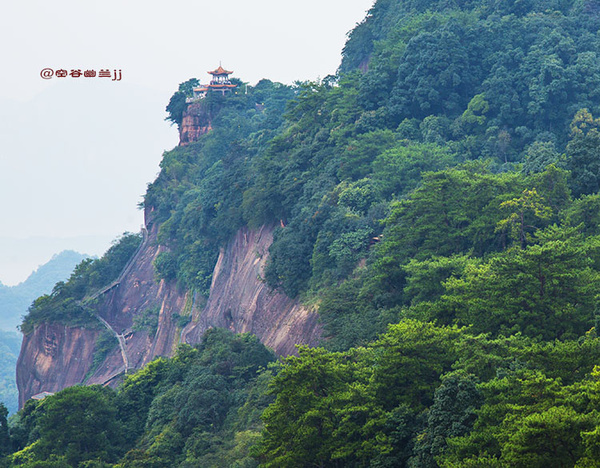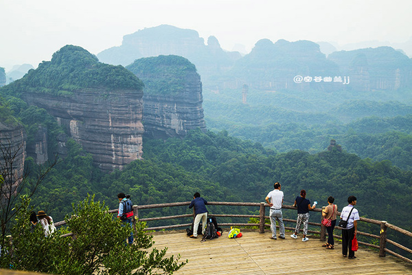 從山腳下乘索道上丹霞山主山之巔—寶珠峰,霧突突的天,在騰空而上的索道上縱目遙望置身于崇山峻嶺之中,不一會(huì)兒就到達(dá)寶珠峰頂,走到東部觀景臺(tái)(韶音亭)遠(yuǎn)眺,群峰疊翠,連綿起伏,“無(wú)限風(fēng)光在險(xiǎn)峰”的詩(shī)情畫(huà)意,得到淋漓盡致的體現(xiàn),讓人感受到世界名山的神奇魅力。