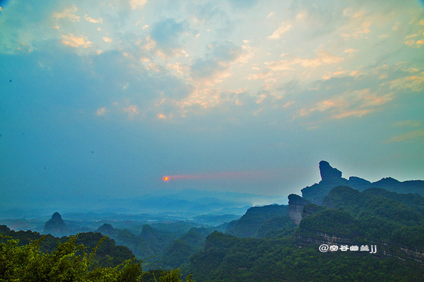 丹霞山之美,是那種把雄奇包裹在雋秀里的含蓄之美。它并不張揚(yáng),遠(yuǎn)望像是一幅優(yōu)美寧?kù)o的水彩畫(huà),顯示出一種優(yōu)雅之美、從容之美和曠達(dá)之美。雖然它的山勢(shì)并不高,但它的許多懸崖峭壁,像刀削斧鑿,直指藍(lán)天,無(wú)數(shù)奇巖美洞,隱藏于山中,景色相當(dāng)奇麗。