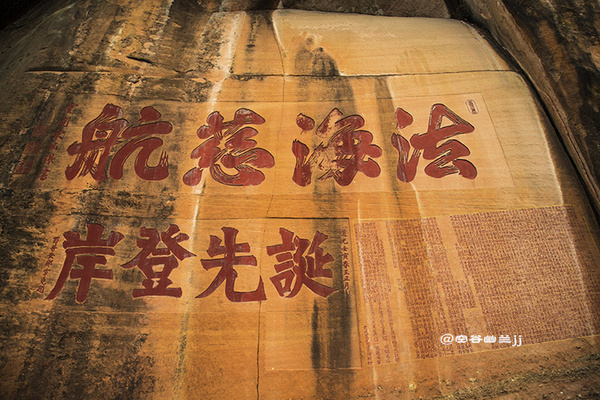 丹霞山的真味也是禪味。寂寂群山幽幽叢林,歷來(lái)是釋家修行隱逸之地。別傳寺寺前石上劈面就見(jiàn)“紅塵不到”四字佛偈,仿佛禪風(fēng)拂面,梵聲過(guò)耳,把萬(wàn)丈紅塵都拋到身后去。