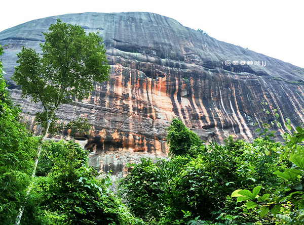 從通泰橋下來(lái)后,感覺(jué)時(shí)間還早就想去細(xì)美寨那邊看看是否可以上去。路過(guò)曬布石,諾大的山體,呈現(xiàn)出一道道的豎紋,好似染房在曬布。