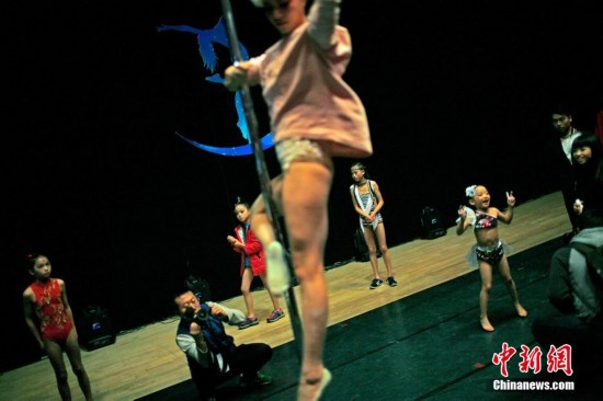 鋼管舞錦標(biāo)賽6歲小女孩成焦點。(記者 佟郁)