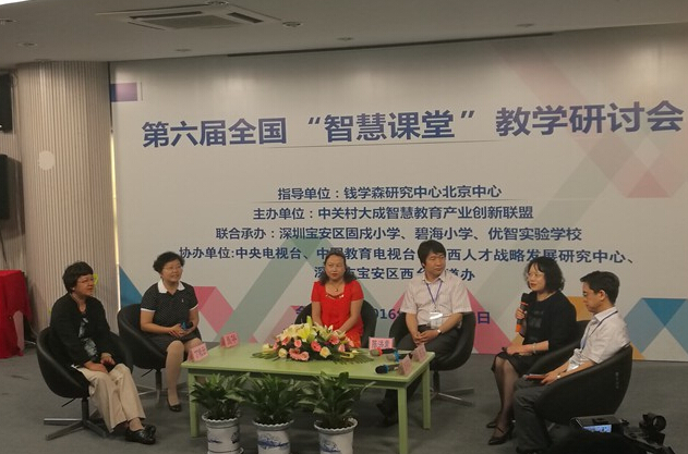 映象網(wǎng)訊 (記者 方圓 張娜)近日,鄭州市中原區(qū)華山路小學(xué)校長(zhǎng)周蕓帶領(lǐng)部分業(yè)務(wù)領(lǐng)導(dǎo)和教師,赴深圳參加由錢學(xué)森研究中心北京中心、中關(guān)村大成智慧教育產(chǎn)業(yè)創(chuàng)新聯(lián)盟主辦的第六屆全國(guó)智慧課堂教學(xué)研討會(huì)。本次活動(dòng)有來(lái)自北京、山東、河南、廣東、云南、四川、重慶等地的名師共同登臺(tái),展示了“智慧課堂”的魅力,激發(fā)了教學(xué)熱情,分享了教育智慧。其中華山路小學(xué)的“動(dòng)感課堂”教學(xué)展示受到了廣泛關(guān)注和一致好評(píng),本次帶隊(duì)參加活動(dòng)的校長(zhǎng)周蕓,也成為本次活動(dòng)中受到中央電視臺(tái)采訪的唯一嘉賓。