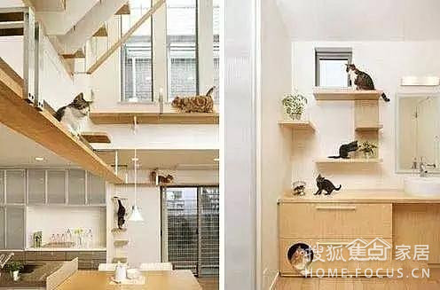 5.可以設(shè)置了一個(gè)步步高貓爬架??梢越o好幾只貓?zhí)峁┩瑫r(shí)睡覺還不互相打擾的地方。然后和這個(gè)貓爬架相連的是一整面墻的貓?zhí)_(tái)。