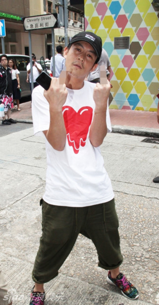 之后陳冠希講了句“不改曬”,然后一度上車,之后再下車,問記者:“你一個(gè)月掙多少錢?”用手機(jī)反拍記者,又趨前想吻記者相機(jī),又做V字和粗口手勢。陳冠希司機(jī)同陳澤民司機(jī)也上前圖擋記者,秦舒培則一直在車內(nèi)。