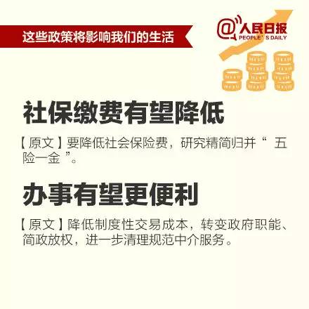 這次會議還用十個“更加注重”指明了新常態(tài)下應(yīng)該“怎么干”。更為關(guān)鍵的是,這個看似“高大上”的經(jīng)濟(jì)工作會議,其實離你我并不遙遠(yuǎn):社會保險費有望降低、非戶籍人口也能住公租房、鼓勵房企適當(dāng)降房價……中央敲定下的這些事,新的一年毫無疑問將給你我生活帶來深刻影響。