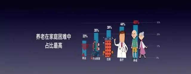 養(yǎng)老(46.6%)替代住房,與收入(54.8%)和醫(yī)療(45.3%)共同成為民生的三大困難。其次是住房、子女教育、就業(yè)和婚姻狀況等問(wèn)題。