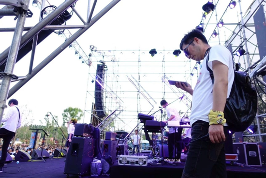 為了讓所有的樂隊(duì)順利演出,主持人丁適在后臺(tái)一站就是十幾個(gè)小時(shí),曬到鼻尖通紅。