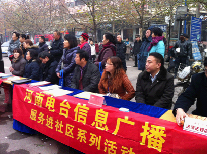 2011年12月2日(全國法制宣傳日前夕)河南人民廣播電臺(tái)信息廣播聯(lián)合建中街道辦事處在碧波園舉行了法制服務(wù)進(jìn)社區(qū)活動(dòng)?;顒?dòng)針對人民群眾關(guān)心的生活問題、需要法治解決的現(xiàn)實(shí)問題,從情理、道理、法理以及憲法、法律、法規(guī)等等方面給予指導(dǎo),通過答問題之疑、解法律之惑,真正為人民群眾排憂解難。使法制宣傳教育深入人心,認(rèn)同法治精神,接受法治理念,共創(chuàng)和諧社會(huì)。