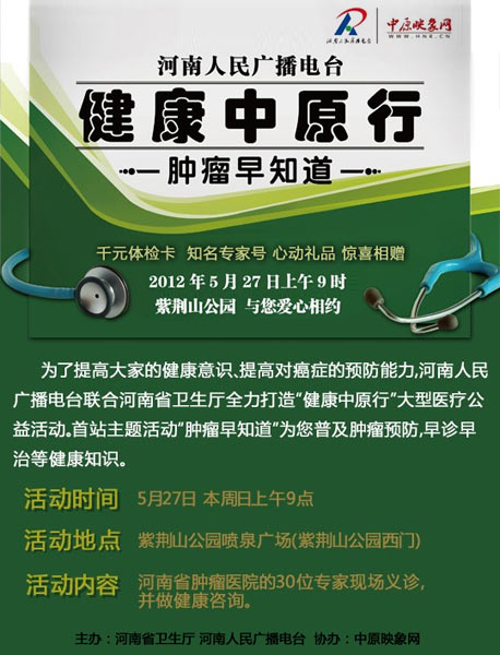 其實(shí),癌癥是可以預(yù)防和干預(yù)的。為了提高大家的健康意識(shí)、提高對(duì)癌癥的預(yù)防能力,河南人民廣播電臺(tái)聯(lián)合河南省衛(wèi)生廳全力打造“健康中原行”大型義診活動(dòng)。