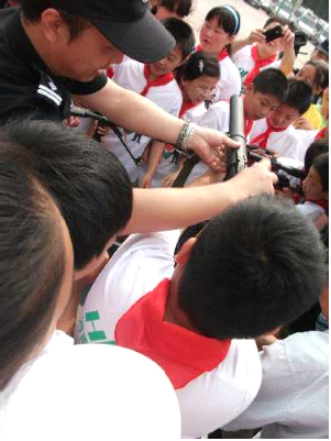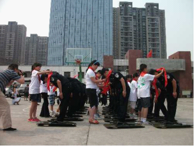 5月31日上午,鄭州市公安局特警支隊(duì)大院里熱鬧非凡,35名小學(xué)生成為這里的特殊客人。在特警支隊(duì)副隊(duì)長(zhǎng)弋遂勤的帶領(lǐng)下,大家興致勃勃地逐一體驗(yàn)了各類防暴器械,觀看武警戰(zhàn)士的絕技表演。特警四大隊(duì)演示的警棍盾牌術(shù)剛毅雄壯,特警新警大隊(duì)的新式擒敵拳颯爽英姿,當(dāng)備戰(zhàn)“2012全國(guó)公安特警比武”的特警猛士一口氣搬起二百斤的巨型輪胎時(shí),大家不由得發(fā)出一陣驚呼!