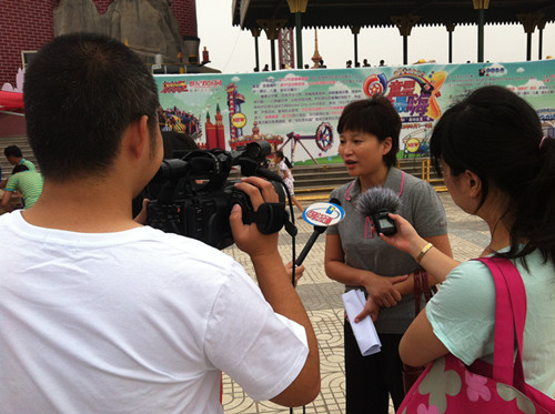 鄭州世紀(jì)歡樂(lè)園外聯(lián)部經(jīng)理劉倩倩說(shuō)能陪孩子一起游園,完成心愿,她很欣慰。(出錄音)