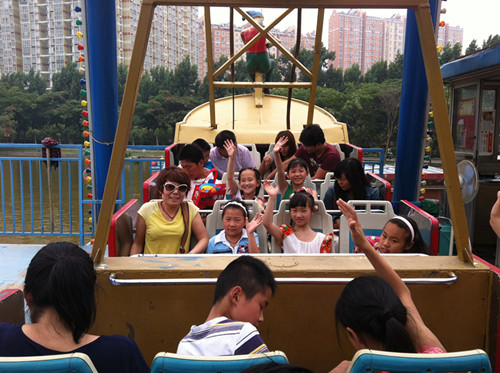 一進(jìn)入園區(qū),孩子們就歡呼著向旋轉(zhuǎn)木馬跑去,我們的記者和孩子們一起坐在旋轉(zhuǎn)的馬背上,和孩子們一起沉浸在節(jié)日的歡樂(lè)中。