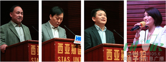 左起:鄭州大學(xué)西亞斯國(guó)際學(xué)院黨委書(shū)記費(fèi)鶴祥 河南人民廣播電臺(tái)副臺(tái)長(zhǎng)李海軍
