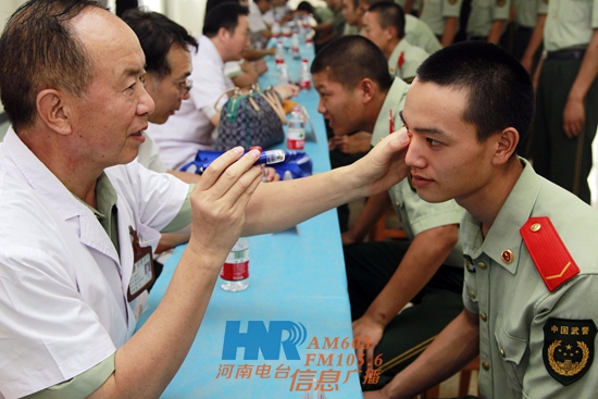 昨天(8月14日)下午,由河南省衛(wèi)生廳、河南人民廣播電臺主辦,河南電臺信息廣播、武警河南總隊醫(yī)院共同承辦的“名醫(yī)中原行”第三站走進(jìn)惠濟(jì)區(qū)武警河南總隊直屬支隊,為武警官兵送上健康和慰問。