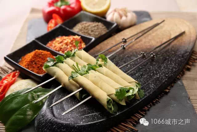 3、秘制燒烤串:選用排酸新鮮黃牛肋排肉,精加工,口感香醇。(牛肉有補中益氣,滋養(yǎng)脾胃,強健筋骨,化痰息風,止渴止涎之功效,適宜于中氣下隱、氣短體虛、筋骨酸軟、貧血久病及面黃目眩之人食用;有吃一塊牛肉,抵得上一天的營養(yǎng)的說法。)