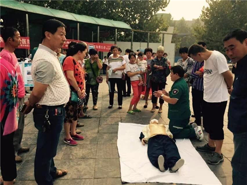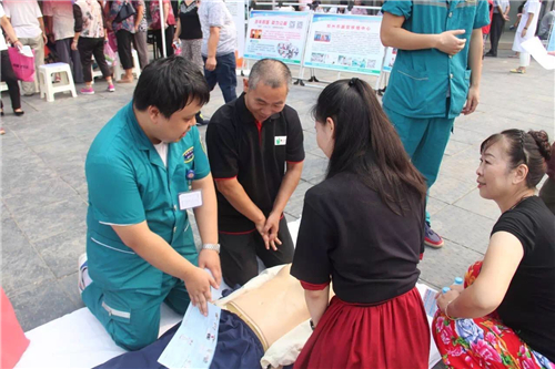 醫(yī)生們一邊操作,一邊講解,市民們有不明白的,還可以現(xiàn)場提問。幾乎每一位認(rèn)真學(xué)習(xí)的市民都想一試身手,醫(yī)生則在一旁一對(duì)一指導(dǎo)。