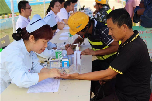 一大早,五大醫(yī)院的白衣天使們,就來(lái)到了中建三局鄭州航空港棚戶(hù)區(qū)改造的施工現(xiàn)場(chǎng)。開(kāi)始準(zhǔn)備工作,希望能夠更好地為建筑工人們做健康檢查。