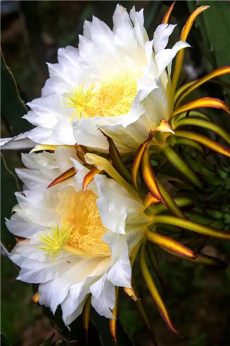 明明會結出火紅熾烈張揚的果實,可是火龍果花開卻如此優(yōu)雅淡然如花仙子。
