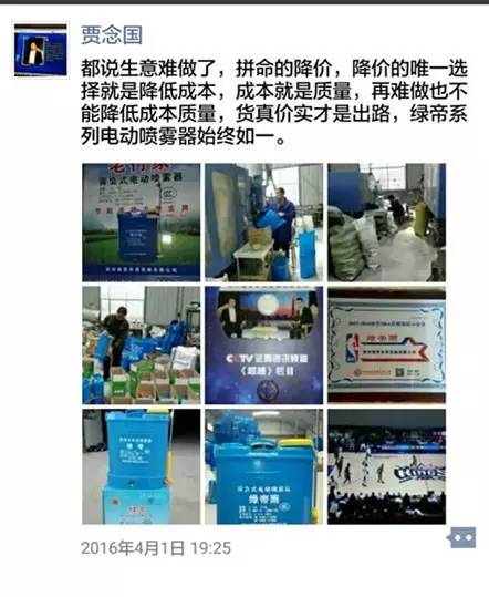 任何一名企業(yè)家,都有困惑的時(shí)候。開始的時(shí)候,生產(chǎn)電動(dòng)噴霧器的公司也就只有他這一家,如今在河南省內(nèi)達(dá)到了100多家,全國(guó)的生產(chǎn)廠家有1000多家,賈總覺(jué)得目前市場(chǎng)競(jìng)爭(zhēng)是比較激烈的,仿造的甚至是假冒的產(chǎn)品還時(shí)有出現(xiàn);產(chǎn)品的利潤(rùn)也沒(méi)有以前高了;隨著原材料及工人工資等成本的增加,批發(fā)價(jià)格也有所調(diào)高;這一點(diǎn),有時(shí)在賈總的微信里也看出了一些無(wú)奈和感慨?! ?/p>