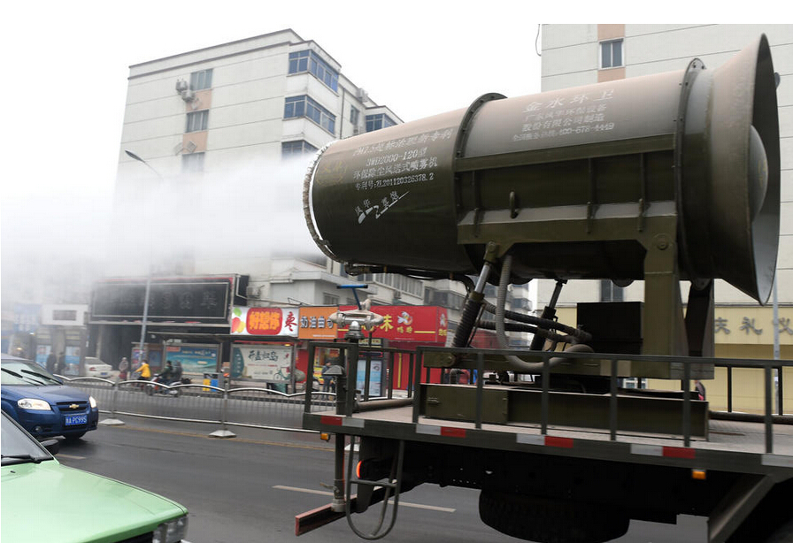 鄭州街頭現(xiàn)“防霾神器”霧炮車,據(jù)悉其噴射的水霧顆粒達(dá)到微米級(jí),能有效分解空氣中的污染顆粒物、塵埃等,有效緩解霧霾。2015年01月05日,河南省鄭州市經(jīng)三路上出現(xiàn)一輛大卡車,車上拉著一個(gè)大炮筒。工作人員說,這是一輛多功能抑塵車,俗稱“霧炮車”?!斑@輛車能裝10噸水,供霧炮噴射75分鐘。”工程師張國強(qiáng)說,霧炮車噴射的水霧顆粒達(dá)到微米級(jí),能有效分解空氣中的污染顆粒物、塵埃等,有效緩解霧霾。