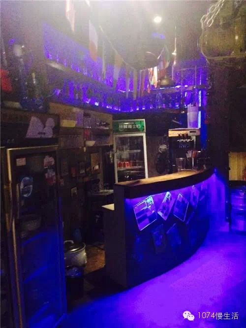 店內(nèi)的裝修風(fēng)格就有點(diǎn)搖滾重金屬的意思,果然,夜幕降臨,燈光一開,立馬就有酒吧的氛圍了。