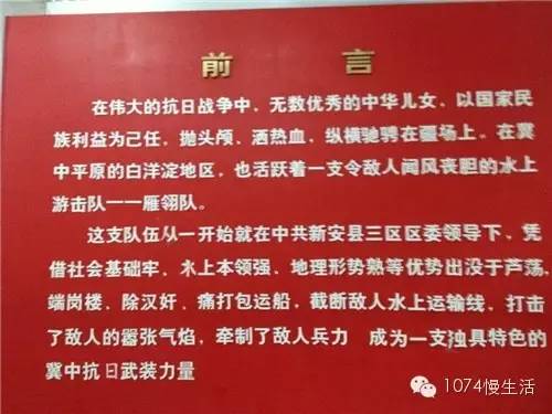 雁翎隊(duì)打日寇、鋤漢奸、端崗樓,打伏擊,功績卓著,被冀中軍區(qū)評為抗日先進(jìn)集體。他們使用過的排子船、大抬桿陳列在中國人民軍事博物館。
