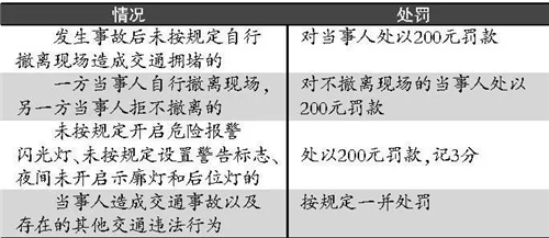 即日起,交管部門將依法加強對“發(fā)生輕微交通事故后,未按照規(guī)定自行撤離現(xiàn)場”的交通違法行為的處罰力度,輕微事故發(fā)生后撤離不及時致堵將被罰款200元,如果未按規(guī)定開啟危險報警閃光燈等,將處以200元罰款,記3分。交管部門表示,對應挪車不挪車的事故當事人“當罰必罰”。