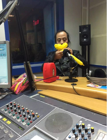 河南電臺1074綠色頻道直播間,胡耀輝現(xiàn)場做起了氣球玩偶。