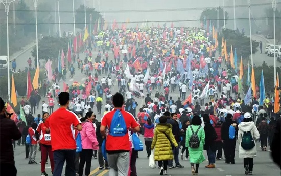 11月13日上午,隨著2016嵩山少林國際馬拉松賽發(fā)令汽笛鳴響,來自世界16個國家和地區(qū)的近15000名跑友跑出起點,瞬間匯聚成流動的七彩人潮,為嵩山美景增架起一道絢麗的彩虹。