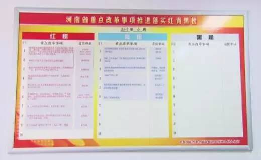 這張省委改革領導小組辦公室內(nèi)的“紅青黑”榜單,生動記錄了各地改革任務的月度推進落實情況。