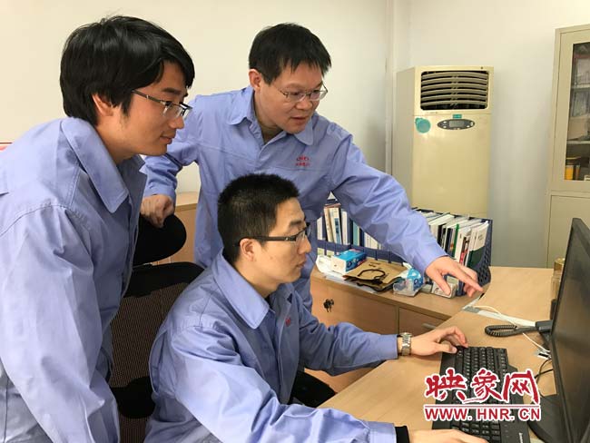 朱新華與同事討論技術(shù)難點(diǎn)