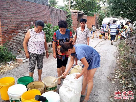 平頂山寶豐縣水利部門用水罐車向村民運送飲用水