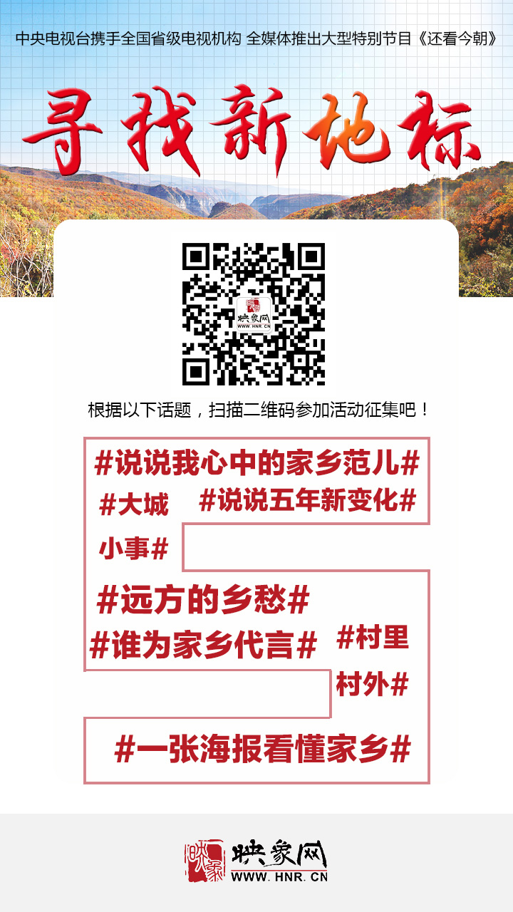 您對(duì)河南有著怎樣的理解?在您心中,河南是怎樣的一張海報(bào)?“還看今朝”四個(gè)字是這張海報(bào)里的文字元素,其他的由您來設(shè)計(jì)!可以是手繪,可以是動(dòng)漫……形式不限,創(chuàng)意無限。被選中的海報(bào)將呈現(xiàn)在中央電視臺(tái)新聞?lì)l道《還看今朝》節(jié)目的背景屏中,作為節(jié)目封面。