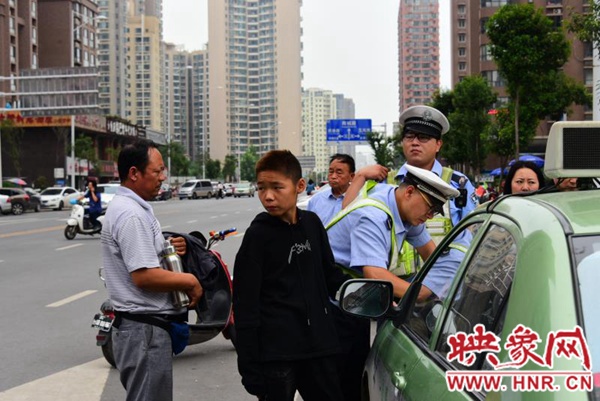 映象網(wǎng)快訊(記者 邱延波 文/圖)9月5日中午12時(shí)許,鄭州市福元路上,一輛電動(dòng)車疑與出租車發(fā)生碰撞,電動(dòng)車上的15歲女生倒地后昏迷不醒。隨后,出租車離開現(xiàn)場,熱心市民騎電動(dòng)車狂追涉嫌肇事的出租車并將其攔下。