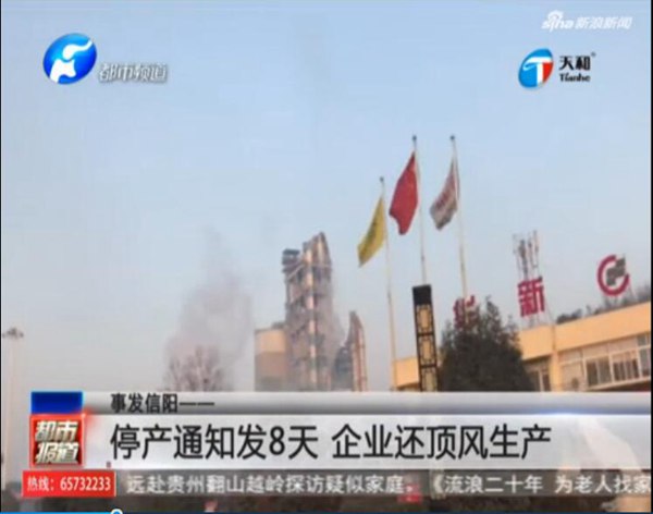 映象網(wǎng)訊(記者 柴可)據(jù)河南廣播電視臺(tái)都市頻道報(bào)道,12月1日,河南省環(huán)境污染防治攻堅(jiān)戰(zhàn)小組發(fā)放通知,要求我省所有水泥企業(yè)停產(chǎn),可是通知已發(fā)放8天了,華新水泥河南信陽(yáng)有限公司(以下簡(jiǎn)稱華新水泥),依然頂風(fēng)生產(chǎn),每天生產(chǎn)5000多噸水泥,燃燒生活垃圾六七百噸,污染還在繼續(xù)。此前,該企業(yè)曾因排污問(wèn)題,被媒體曝光。