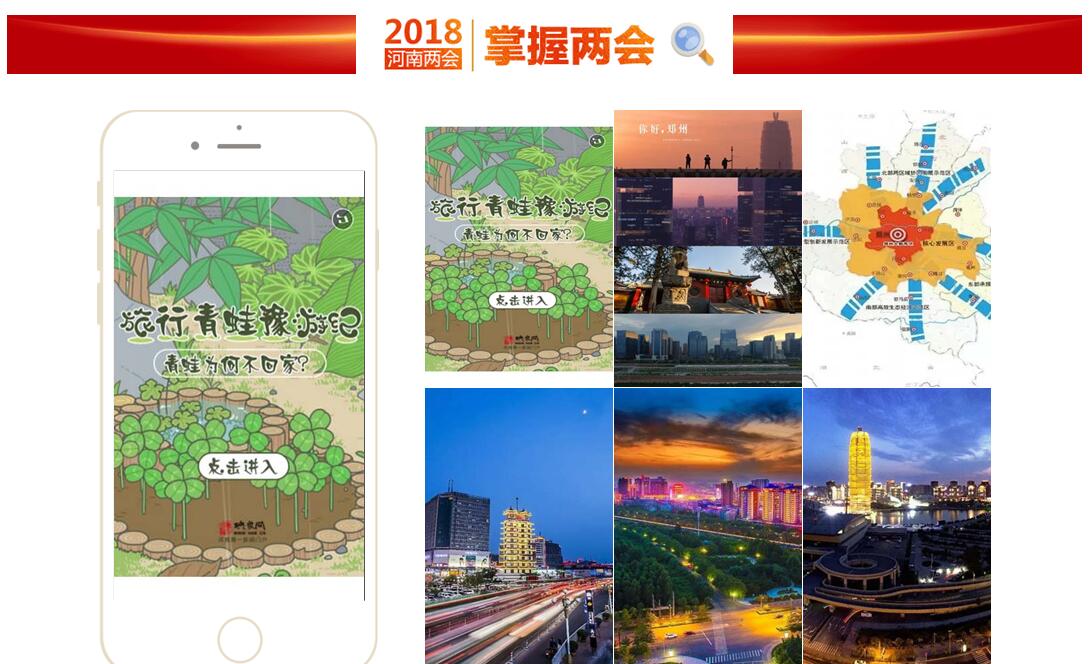 映象網(wǎng)的H5特別策劃《旅行青蛙豫游紀》,更是將H5結合網(wǎng)絡熱點,通過那只網(wǎng)絡爆紅的旅行青蛙,將政府工作報告中的關鍵詞以獨特的視角展示給網(wǎng)友,讓網(wǎng)友們感嘆原來政府工作報告還要這樣的打開方式。截止目前H5總pv超過23萬。