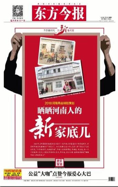 同時,東方今報還推出2018河南兩會特別策劃——“幸福都是奮斗出來的”,側重報道正在奮斗且勵志的社會中堅力量,一個個鮮活的人物故事勉勵我們,為中原更加出彩而努力奮斗。截至目前已刊登四篇報道,分別是《幸福是奮斗出來的系列報道之(1) 河南妞兩次為“彭媽媽”表演 特邀列席縣政協(xié)會議》《幸福是奮斗出來的系列報道之(2) 90后辭年薪二十萬工作創(chuàng)業(yè):我的心愿是“藝術+”》《幸福是奮斗出來的系列報道之(3) “海歸農(nóng)夫”師鵬飛:現(xiàn)代農(nóng)場放飛創(chuàng)業(yè)夢》。