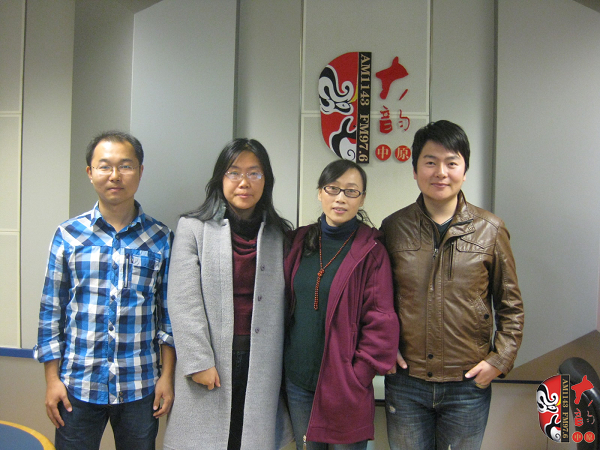左起:河南電臺(tái)戲曲廣播《梨園留聲機(jī)》主持人王博,《梨園老照片》主持人曉雪,戲曲廣播副總監(jiān)張彤,品牌部主任月陽