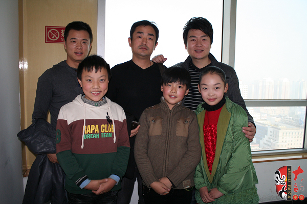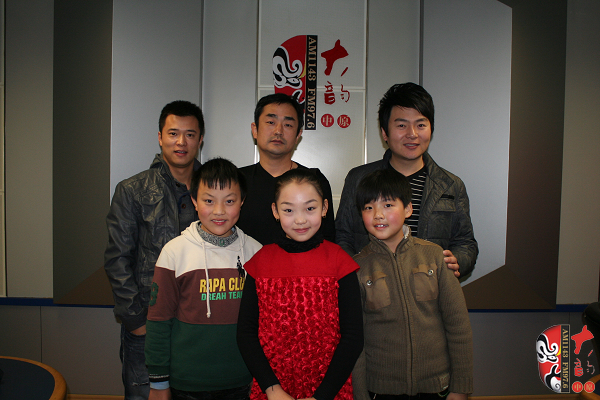 王希玲藝校學生、梨園春明星擂主席超(后左一)、王希玲藝校 校長陰志勇(后中)、河南電臺戲曲廣播當家小生月陽(后左三)、王希玲藝校學生、梨園春明星擂主徐帥文(前左一)、王希玲藝校學生、梨園春明星擂主連小爽(前左二)、來自朝陽溝的小栓寶、王希玲藝校學生趙藝多