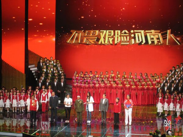 5月29日晚,在河南藝術(shù)中心現(xiàn)場直播的“河南電視臺《梨園春》特別節(jié)目——我是河南人”專場晚會,沸騰了現(xiàn)場的2000名觀眾,震撼了電視機前的億萬觀眾。用歌聲、用唱腔,唱出了“大寫”的河南人形象。第九屆、十屆全國政協(xié)副主席、河南中華豫劇文化促進會名譽會長張思卿觀看了演出并給予高度評價。 省領(lǐng)導盧展工、郭庚茂、李克、孔玉芳、鄧凱、劉春良、劉懷廉、連維良、尹晉華、曹維新、劉新民、張程鋒、蔣篤運、史濟春、徐濟超、陳雪楓、趙建才、王訓智、龔立群、梁靜、高體健,全國政協(xié)教科文衛(wèi)體委員會副主任王全書等出席了晚會。 整臺晚會分為數(shù)個篇章,其中的“人民公仆贊”里,從《焦裕祿》的“百姓歌”,唱到《村官李天成》的吃虧歌;在“永遠的豐碑——紅旗渠”中,紅旗渠特等勞模任羊成、張買江、郭秋英的到來,帶大家回到了那段崢嶸歲月…… 最讓大家感動的是馬金鳳、王立群、李文祥、李靈、胡葆森、馬艷麗、李高峰、孫甜甜8位優(yōu)秀河南人代表朗誦的“河南人”,把作為一名河南人的驕傲和自豪,傳遞給在場的每一位觀眾。而欄目組奔赴全國各地,采訪數(shù)十位河南籍名人的片段,更是引起現(xiàn)場觀眾的強烈共鳴,這個夜晚,“作為河南人的自豪”充盈在了每一個觀眾的掌聲里,“對于河南人的感動”融合在了每一個觀眾的笑臉上?!斑@是一臺我看了感觸最多的晚會,很長時間都沒有看過這樣精彩的戲了。”晚會結(jié)束后,主要領(lǐng)導上臺和演職人員握手并合影留言。第九屆、十屆全國政協(xié)副主席、河南中華豫劇文化促進會名譽會長張思卿對于整臺晚會的評價,讓演職人員都沸騰了起來,鼓掌聲和叫好聲響成一片?!?“首先我跟大家說,我是河南人!是洛陽人!”張思卿這句話一說完,在場的河南人集體鼓起掌來?!敖酉聛砦艺f三句話,第一句是,這是一臺非常精彩的演出!”(掌聲雷動)張思卿接著說,第二句是,這臺晚會所演的、所唱的,都是“正氣歌”。(掌聲繼續(xù))第三句是,大家所概括的河南人的精神,也是一種革命的精神,從干部來講,反映出的是“百姓大于天”;從普通人來說,只有通過艱苦奮斗和不懈的努力,才能夠取得良好的成績,“概括起來就是,我們有了這種革命的精神,就能夠戰(zhàn)勝一切”!看到張思卿對“河南人精神”評價如此之高,大家都沸騰起來。